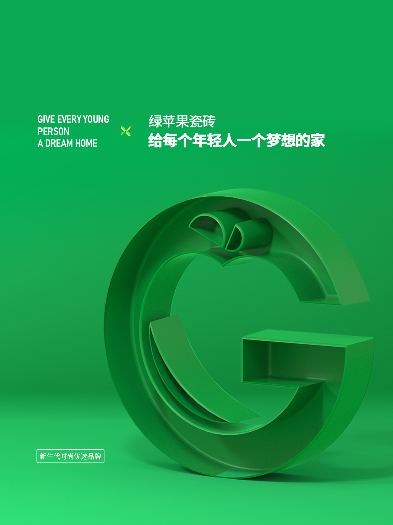新生代品牌瓷磚綠蘋果瓷磚GREEN APPLE 始于2010年,糅合潮流元素與多變格調(diào),優(yōu)選品質(zhì)好物,用顛覆創(chuàng)新的思維去組合夢(mèng)想空間,打造時(shí)尚、激情、富有情感互動(dòng)的理想家,其中張揚(yáng)著年輕、奮斗和快樂的DNA。產(chǎn)品集合國際潮流色彩,以“給每個(gè)年輕人一個(gè)夢(mèng)想的家”為品牌使命,傳遞正青春的簡單理念和細(xì)膩入微的質(zhì)感精神。